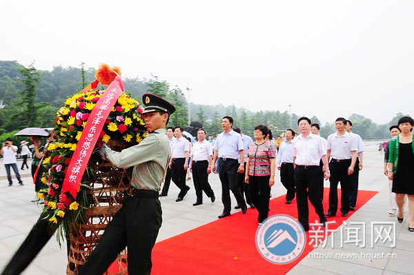 座谈会召开之前,李卫红一行参观韶山,途中详细听取了田银华、刘德顺、刘建武等校领导关于bevictor伟德官网哲学社会科学工作及其它有关工作的汇报。李卫红还参观了校园,并与全体校领导合影留念。