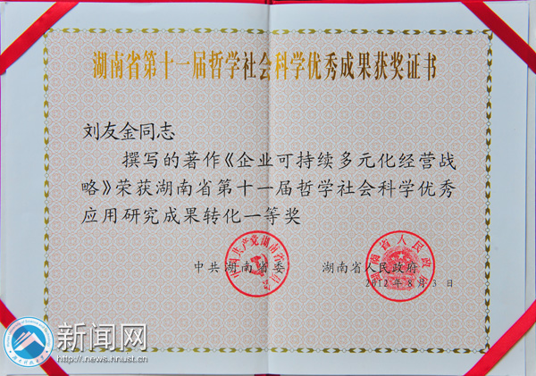 刘友金教授喜获湖南省第十一届哲学社会科学优秀成果一等奖